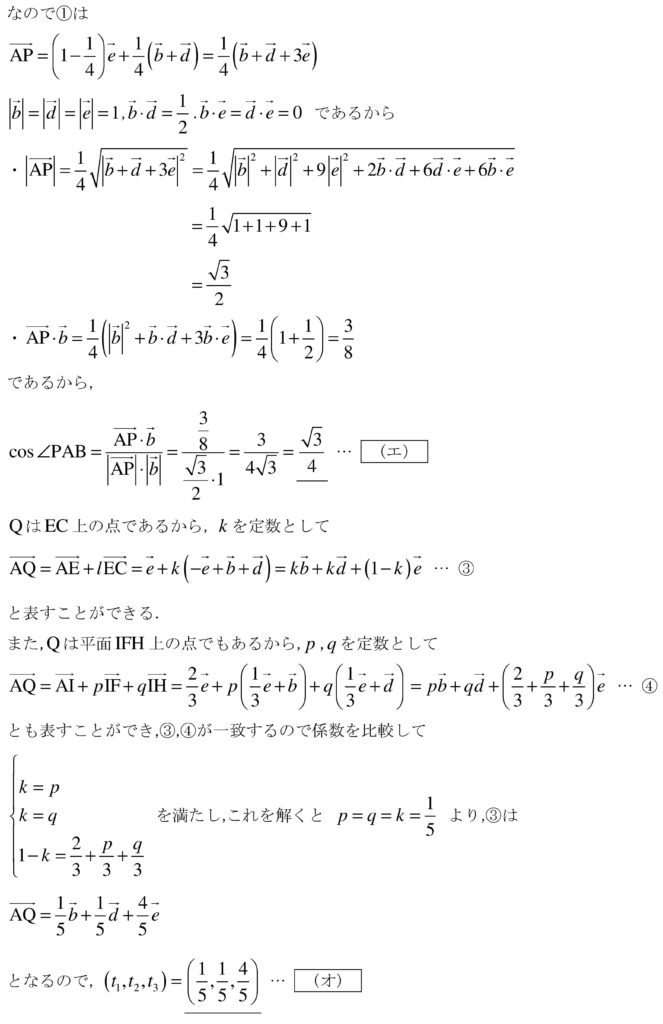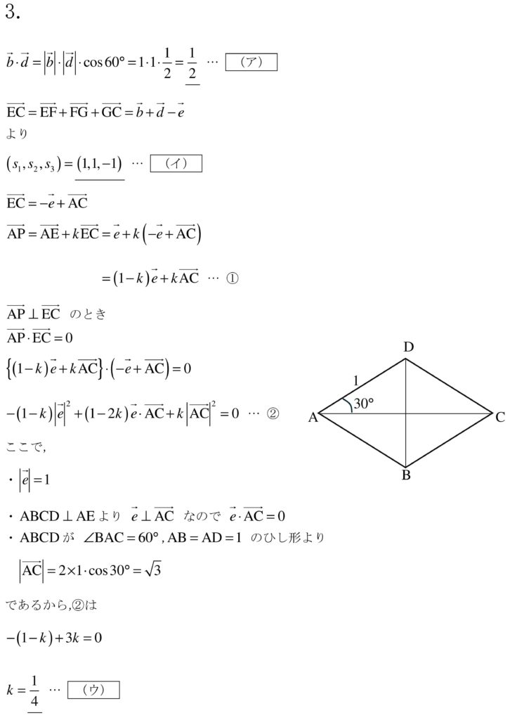 直角も多いので内積の計算もそこまで煩雑にはならないので、丁寧な計算が大事。
