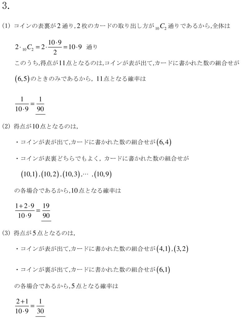 場合の数や確率はあっさり終わると何か見落としていないかと不安になる(笑)