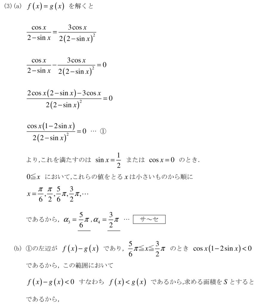 (2)の前半(aの値を求めるところ)はもっと、何かきれいに解ける方法があるのかもしれない。