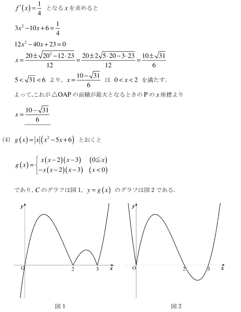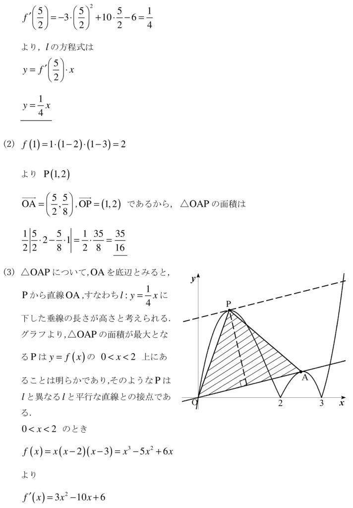 (3)が解き方を誤るとかなり面倒なことになるので、ここがうまく解けたか、もしくは無理だと思った時点でさっさと切り捨てたかで差が付きそう。